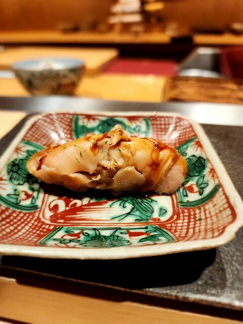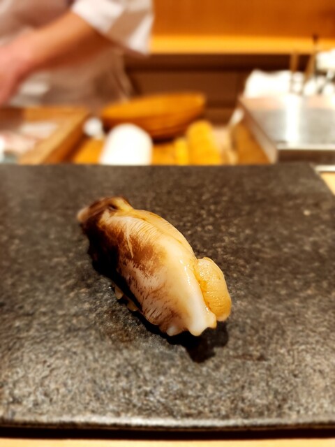 つぶ貝、コリっとした食感で爽やか。シャリの旨味にぴったりと寄り添う。
