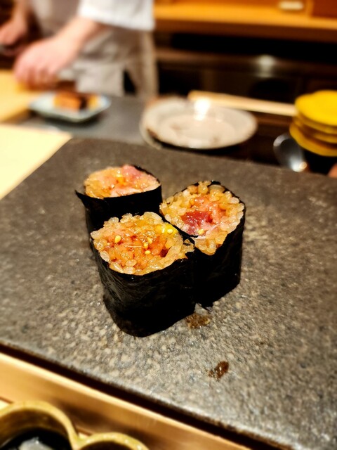 インパクトのあるトロから握られ、ぐっと心を掴まれる。濃厚で力強い脂が魅力的。