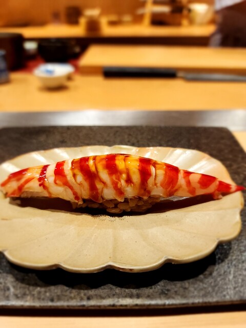 車海老、押し返す歯応えに驚く。ぷりっと繊維が解れ甘味も活き活きとする。火入れを研究され素晴らしい個性を発揮される。