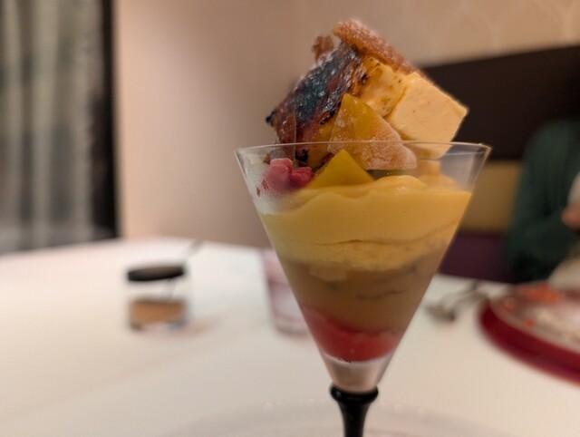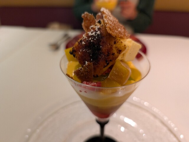 そしてデセール。今回はマンゴーとメロン、なんとパフェで出てくる。