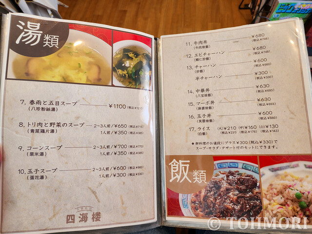 「中華料理 佐世保 四海楼」。長崎「四海樓」でコック長を務めた初代が暖簾分けを認められ、1954(昭和29)年に佐世保駅前でお店を開いたのが始まり。その佐世保駅前の店は1990年に火災で焼失。その後、早岐駅南側の広田町を経て、2019年に早岐駅から近い現在地へ移転してきた。