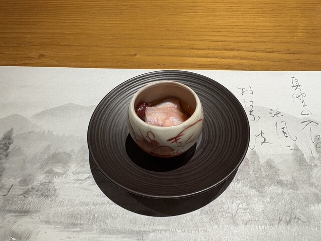 リニューアル後のカウンター席、すなわち、「淡海地鶏食べ尽くしコース」の一発目のメニューは…、