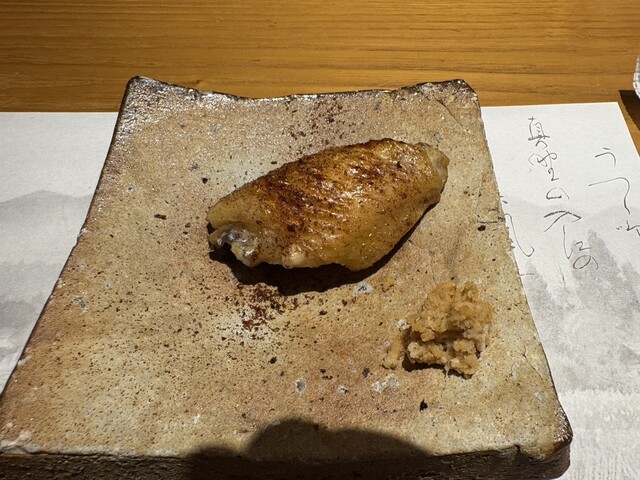 雌の手羽先塩焼き。美味し過ぎて、これだけでレビュー書けます。