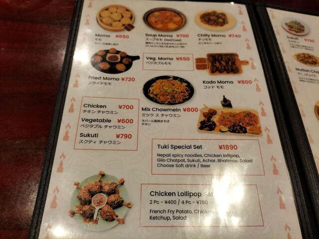 メニューにセット内容が書いてありますが、日本語でない(英語・ローマ字・他はネパール語?)