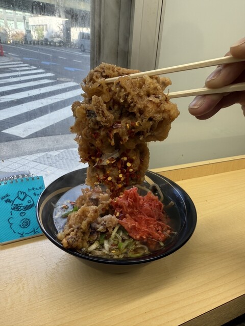 #太蕎麦(大盛)[ジャンボゲソ天、紅しょうが]