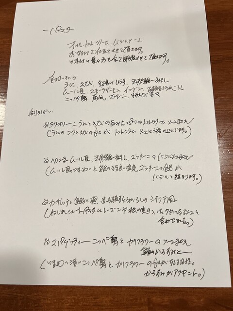お料理の量やパスタの種類も、相談にのってくださいます。