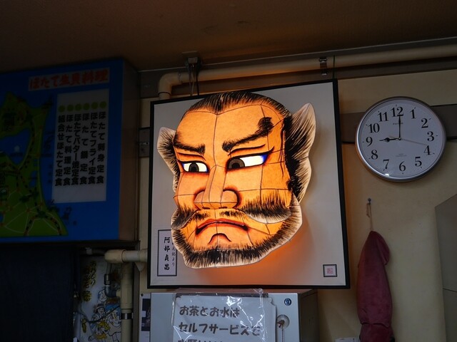 『活けホタテ』が売りの食堂。