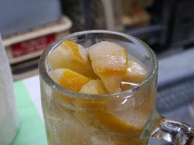 しばらくして到着した蒸し豚をつまみつつ