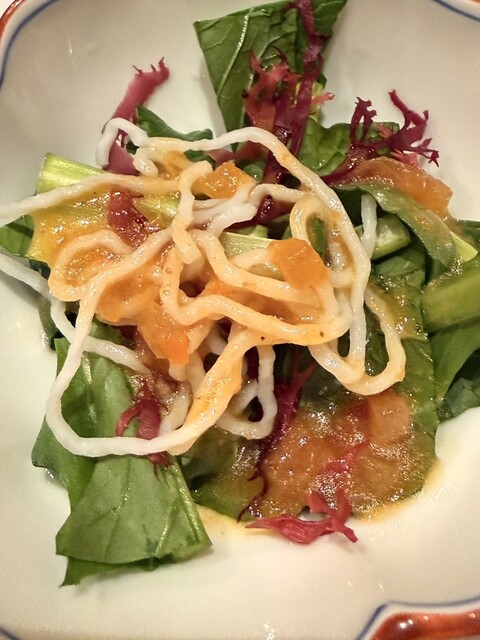 炒め物は同じく小松菜なんですが、お肉、トリフ、カラスミが入っていて美味しかったです。