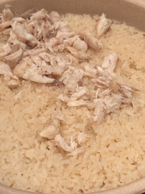 土鍋の小松菜ゴハンは味がしっかりしていて、出汁が入っている感じ