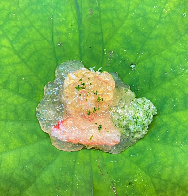 ◎毛蟹とオクラタタキと酢ジュレ