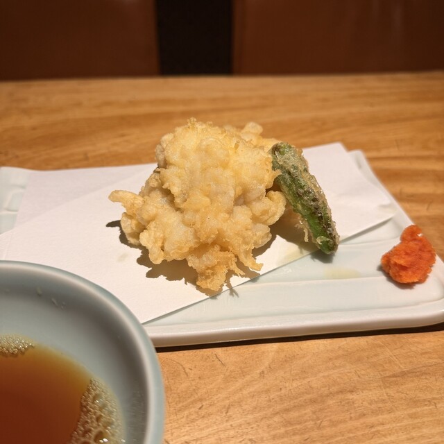 鱧の天ぷら:大ぶりに捌いた鱧が2切れ。衣は軽く、満足度高め。