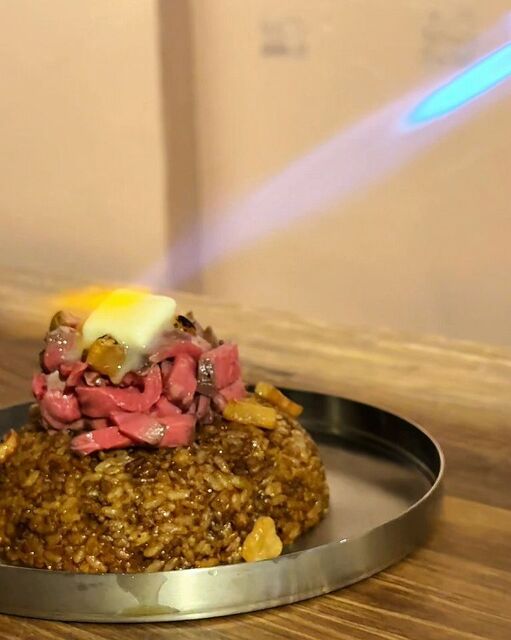 そして、この店で注文率100%なのがガリバタ和牛鉄板焼き飯です。これが驚くほど美味し過ぎて、つい友達と全部の焼き飯を頼んじゃいました!香ばしいバターが和牛の旨味に絡んで絶品です。
