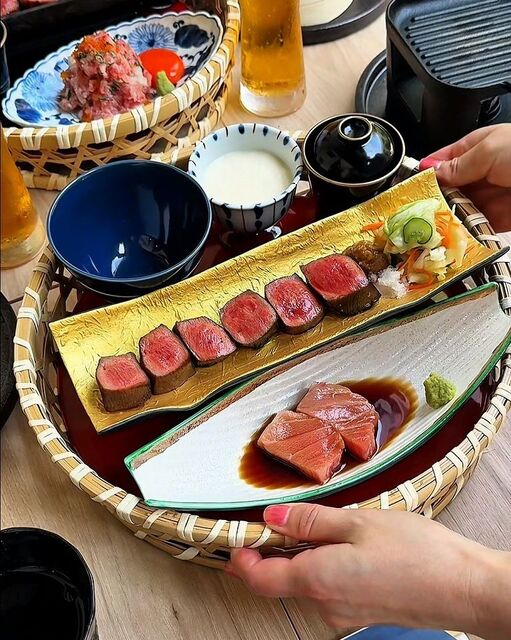 築地で今話題の超豪華牛タン定食を紹介します。こちらは築地にある、牛タンとマグロと餃子が人気の「牛タンとマグロとクリスピー餃子 ひまわり[海] 築地店」というお店です。がっつり食べたい人も大満足間違いなしで、ランチタイムには多くの人で賑わっています。◆極厚牛タンをたっぷり食べれる贅沢ランチ今話題の「炭火で焼き上げた極厚牛タンをたっぷり食べれる贅沢ランチ」が人気です。せいろで蒸したご飯もついてきて、選べるサイドメニューはマグロのトッピングがお勧めです。牛タンの厚切り感がたまらなく、炭火の香りと共に贅沢な時間を過ごせます。◆牛タンと大トロの組み合わせは最強!牛タンと大トロの組み合わせなんて最強です!他にネギトロも選べたり組み合わせはたくさんあります。牛タン好きもマグロ好きも満足できるラインナップです。◆とろろを贅沢にご飯にのせて一緒に食べたらマジで美味い!セットでとろろもついてくるから贅沢にご飯にのせてとろろと一緒に食べたらマジで美味いです!炭火香る牛タンに、とろろが混ざり合って絶品です。◆生でも食べられる新鮮なマグロを炙るなんて贅沢過ぎる!生でも食べられる新鮮なマグロを炙るなんて贅沢過ぎます!新鮮だからこそ味わえる香りと旨みのバランスがたまりません。牛タンとマグロとクリスピー餃子 ひまわり[海] 築地店では他にも、「厚切り牛タンとねぎタン塩の膳」「厚切り牛タンと黒毛和牛のすき焼きの膳」「厚切り牛タンと黒タンシチューの膳」などいろいろな組み合わせで注文できます。築地でお肉も魚も楽しめるいいとこ取りランチを是非一度試してみてください!>> Instagramで毎日、動画でお店を紹介しています
