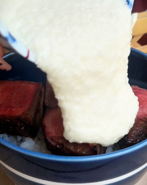 セットでとろろもついてくるから贅沢にご飯にのせてとろろと一緒に食べたらマジで美味いです!炭火香る牛タンに、とろろが混ざり合って絶品です。