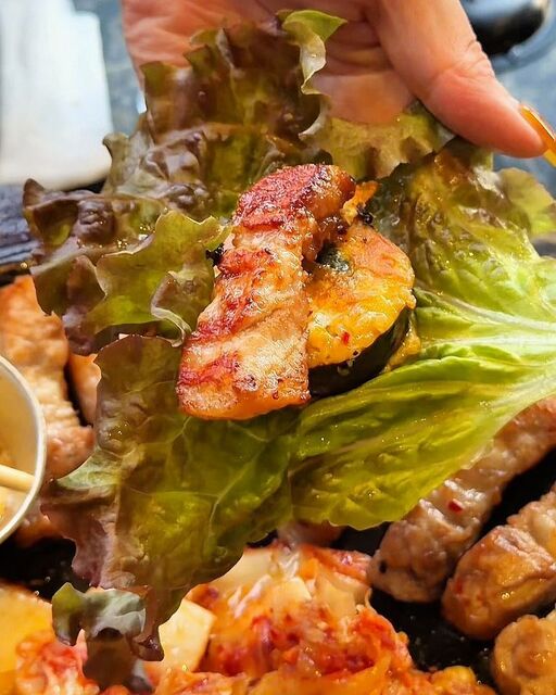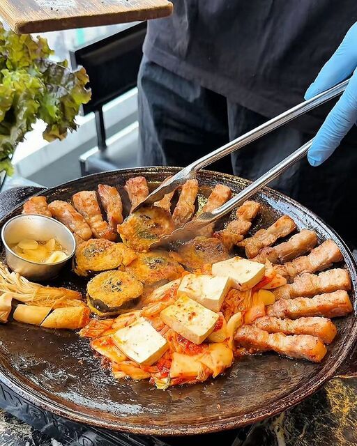 他にも、この厚切りサムギョプサルは高温の鉄板で一気に焼き上げてくれるから、外はカリッとしていて中はしっとりとジューシーな食べ応えに仕上がってるんです!噛むたびに旨みがあふれてきます。