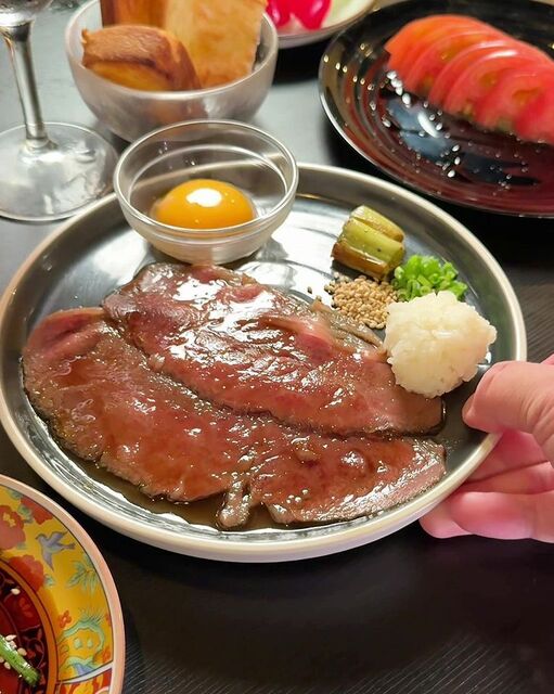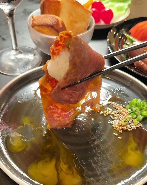 「A4黒毛和牛ロースの焼きすき」はとってもレアな火通りで、食感の良いネギと一緒に食べたら、とろけるお肉とザクザクのネギの食感のコントラストが心地よくて絶品でした!