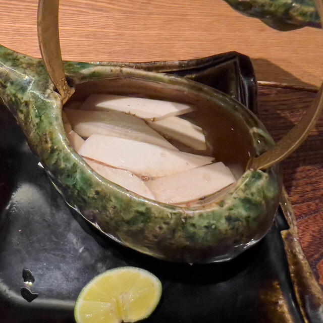 神楽坂から見番横丁へ折れて石段の坂道の半ばにある。元は一軒家の民家、それから医院、料理屋を経て2024年虎白になった。とても風情のある店構えに全面的に手を入れてある。店内にBGMはなく、水の音に加えて...