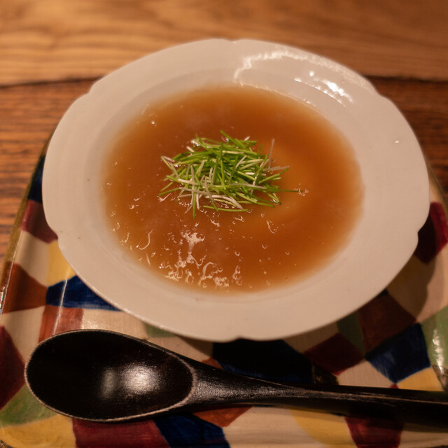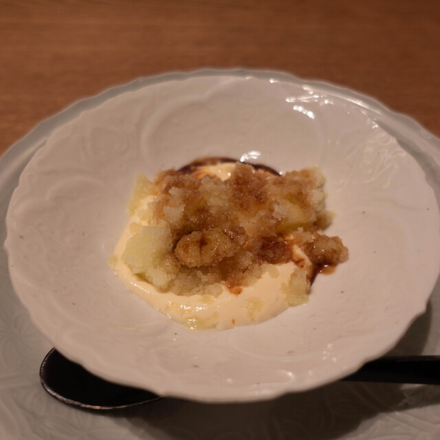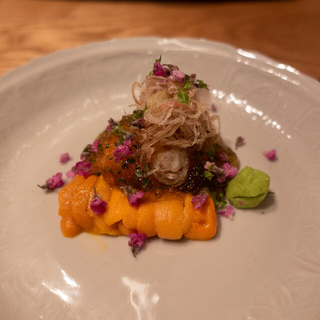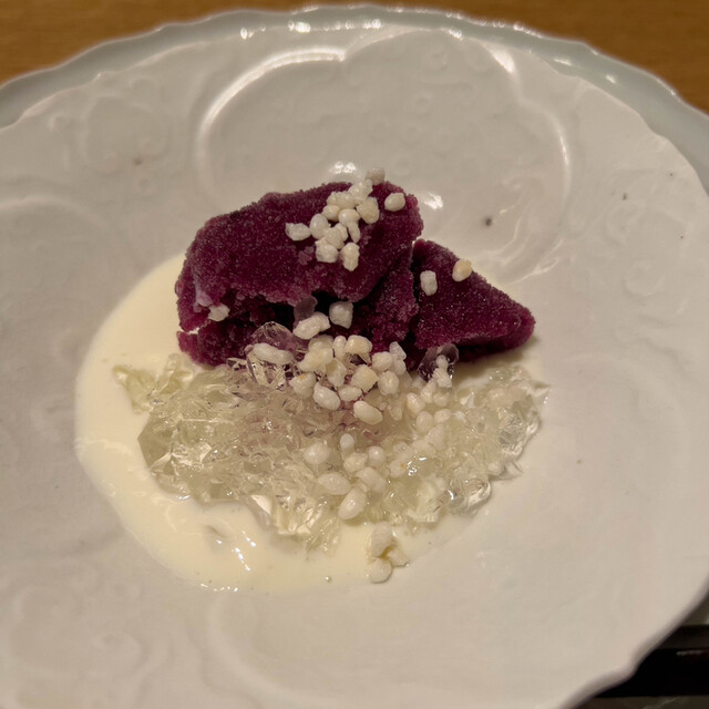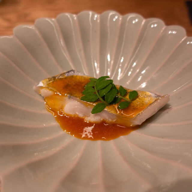 コロナ自粛で一回飛んで久々の訪問。BGMはなく、代わりに微かな水の流れる音。小泉さんのヘアスタイルが変わっていた。いつも新鮮な驚きのある料理。小泉流ますます好調。昼の回も増えて仕込みなど大変かと思う。