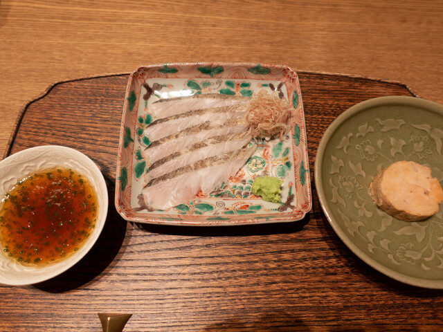 ・お造り 太刀魚、あん肝(蒸して出汁に三日漬け込んだ)