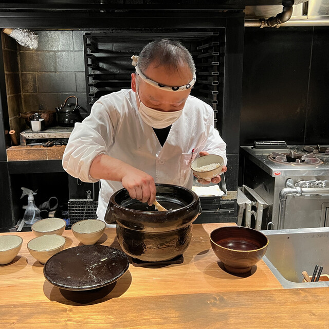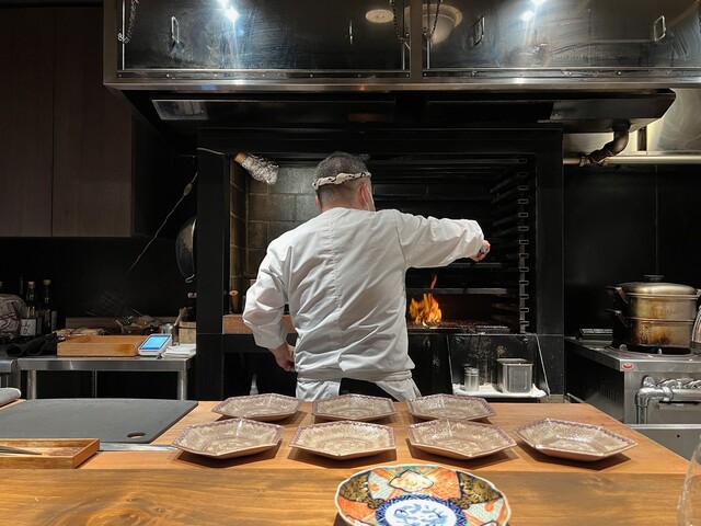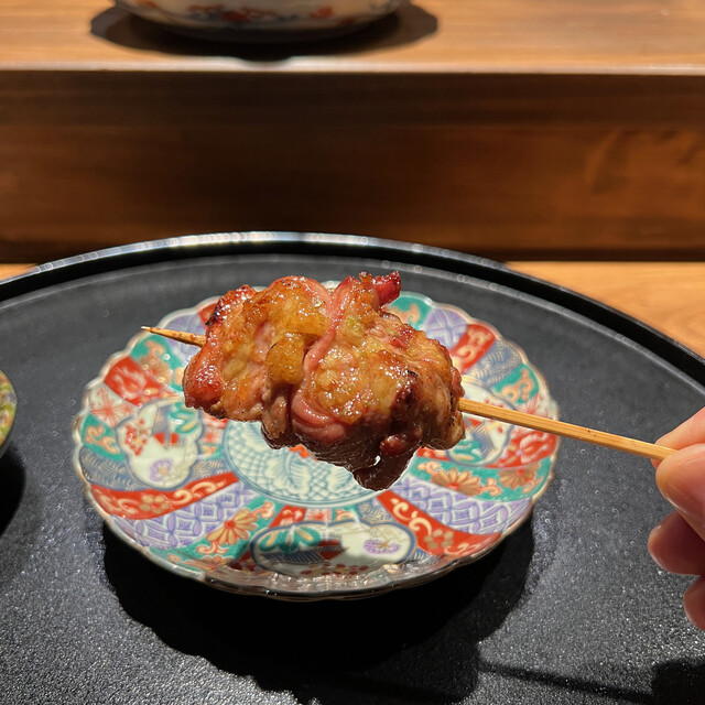 素材がまとう薪焼きの香りが素晴らしい。未体験の味。器を次々に交換してくれるが、どれも素晴らしい器ばかり。途中で箸も交換。水も少し減ると補充。客をよく見て隙がない。親方は全く偉ぶるところなく、質問にも丁寧に説明してくれる。なるほど予約が取れないのは自明。これは焼き鳥というより鶏料理。