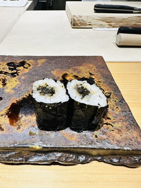 お茶菓子を除くコースの最後にスペシャリテとして、かっぱ巻きとは。