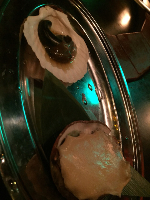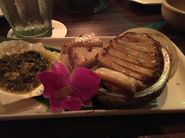 アワビは、肝ソースに身をディップしていただきます。この、肝ソースが絶品!!!