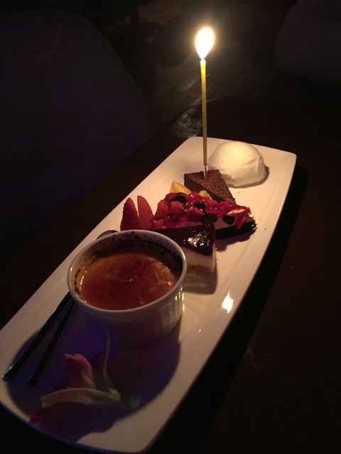 焼きたてのクリームブリュレと、チョコレートケーキ、ベリーのケーキ、シャーベット、レアチーズケーキを夜景と共に楽しむことができますよ。