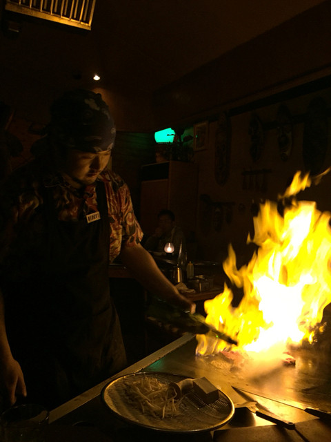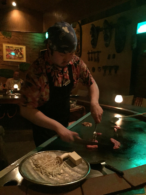 焼き方は、レアを選択。細かく切ってくれました。ご飯ものは、ご飯orラーメンなのですが、私たちはガーリックライスをお願いしました。