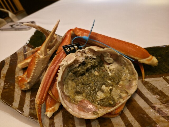 現在は18代目館主・永井隆幸氏がその暖簾を守る。館内には魯山人の作品がさりげなく配され、まるで美術館のような静謐な空気が流れる。冬の北陸といえば蟹だが、この宿で供されるのは、近隣の橋立漁港で水揚げされた最高級の「加能ガニ」。魯山人の美学が息づく空間でいただく蟹尽くしは、単なる食事を超えた芸術的な体験であった。