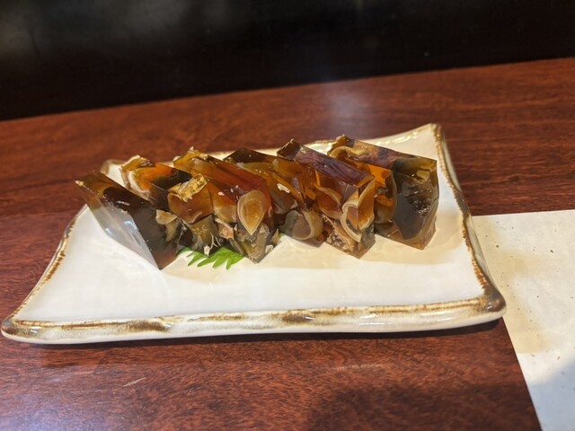 店内は喫煙可なので、ちょっと煙いが、料理はどれも美味しい。まずは煮凝り。こちらの煮凝りは濃厚で甘さがある。5年前の印象よりも美味しく感じた。次はふぐ刺し。これは普通に美味しい。ひれ酒をオーダー。こちらのひれ酒は、普通の店の倍以上ひれが入っている。前にも来た事があるんだから、やれるでしょと言われたが、私が火をつけている姿をみて、許せなかったらしく、おばちゃんがひれを箸でつまんで火をつけて酒からひれを出したり入れたりしてくれた。香ばしく美味しいひれ酒だ。