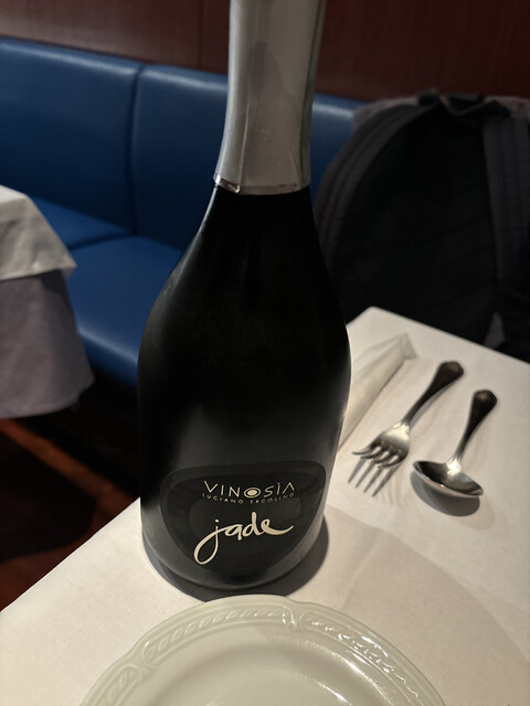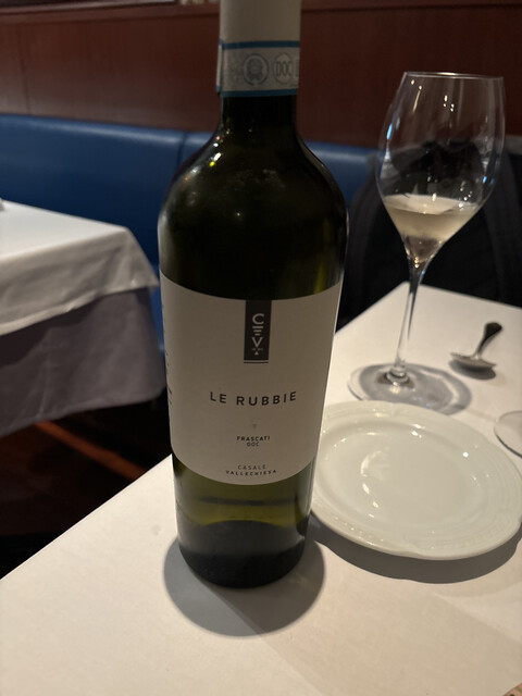 飲み物はサンペレグリノと、私と妻がリースリング Niedermorschwihr 2019 Albert Boxler (2300円)、仔鳩の時に私はBeaune 2015 Newman(2700円)もオーダー。