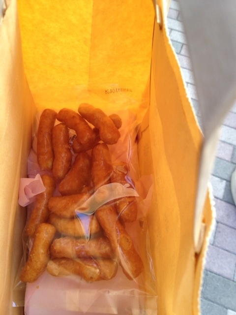 久しぶりに花月のお店に。かりんとう200g(780円)を購入。すると、形の悪いはじき物を一袋分もらえてとってもお得。