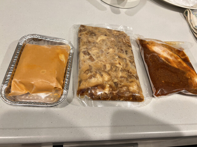 ソラマチからNOURAに電話してテイクアウトをお願いした。今日は自家製パテドカンパーニュ(864円)、南部高原豚バラ肉のビール煮込み(1296円)、マダムビュルゴーのシャラン鴨 腿肉のコンフィー(2700円)、ルーロー(200g2人前 1620円)。