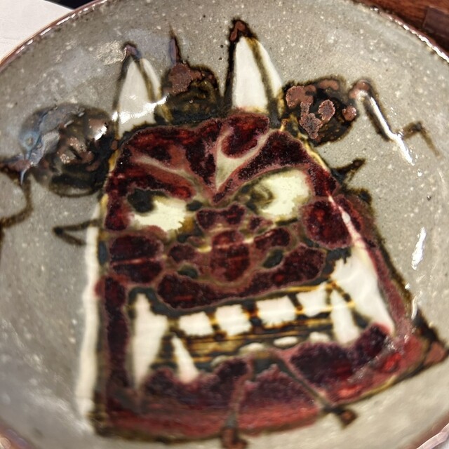 節分だったので鬼の皿が付いていて、竹の器に入ってる丹波黒豆を鬼器にまいて鬼退治