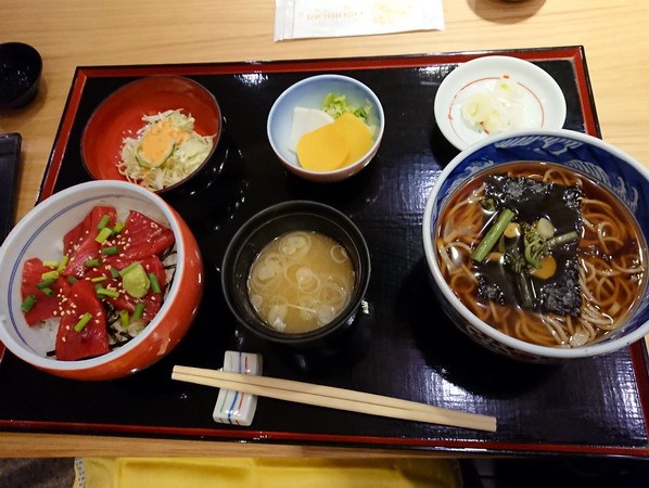 我妻オーダーは、鮪の漬け丼セットを冷たいそばで!というヤツです。