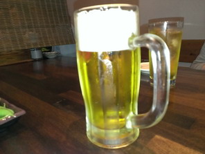 我妻は本調子ではないのですが、せっかくなので夜の街に繰り出すことにいたしましょう! と、出向きましたのはひとし・石敢當店デス♪ かなり混みあっている中、早めに予約していたのでソコソコにまっとうな席に案内していただけます。 まずはという感じでオリオンの生ビールを飲み干しまして、瞬時に泡盛にシフトします(呑)