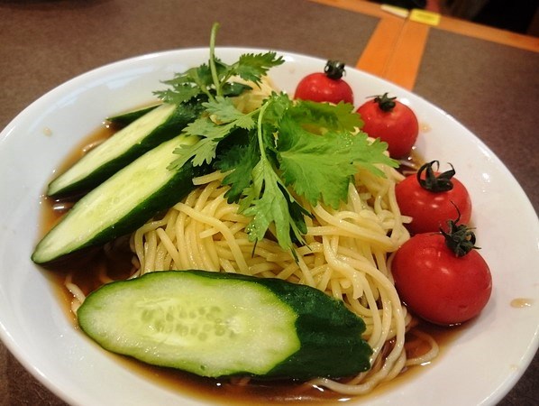 でもって、冷やし中華デス♪♪ 確か丸鶏の塩蒸し焼きが無いので「デキマセン!」と言われていたようですが、ソコは夫々が複数回通っているのでテケトーにオーダーが通ったようです(問)