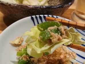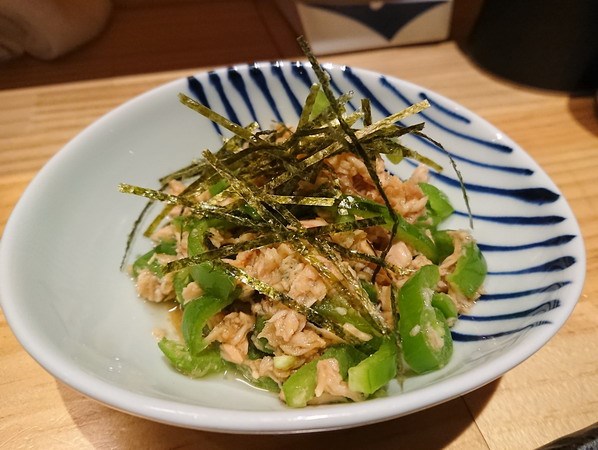 ナニを頼んだか記憶も定かではありませんが、各々美味しくいただいていきまして、箸休めにはツナピーマンでしょうか(忘)