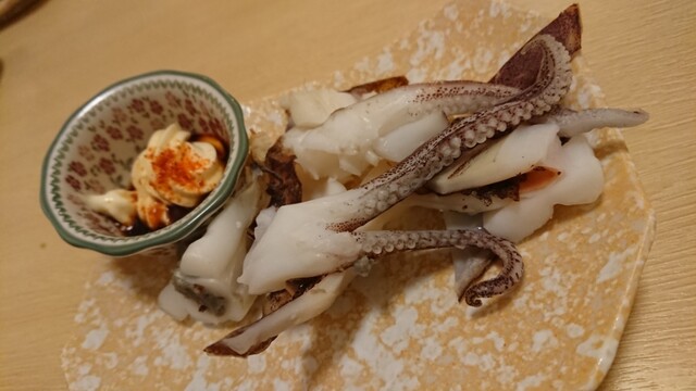烏賊は言うまでもなく。骨はふだんは天麩羅にするところ、おすすめの塩焼きをはじめて頼む、これが旨い。焼き加減よく七味マヨも相まっていくらでも入る。