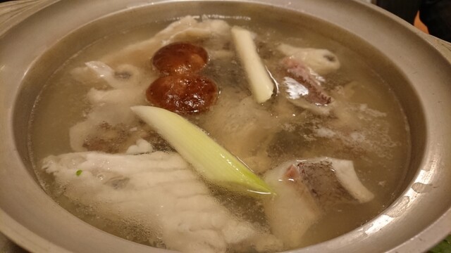 さて、このタイミングで河豚のヒレ酒。スタッフの妙技で、さらっとヒレを炙ってくれる。たまらない味わい、大きくこれで5杯は続けられる。