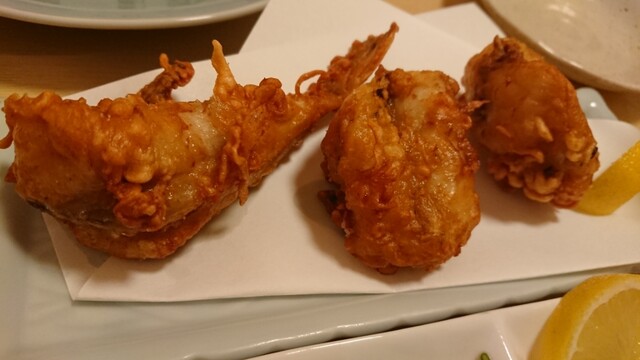 揚げ具合よくからっとしてるが、身はふっくら白い。味付けも濃さがあってよい。3つあるのでこれをつまみに、ハイボールは既にラストスパートになる。