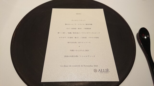 お酒はソムリエさんのお薦めで、シャンパン、日本酒、白、ロゼ、白、赤の6種を出していただいた。どれも味わい深く最高のひとときを過ごせた。