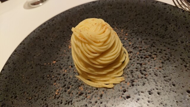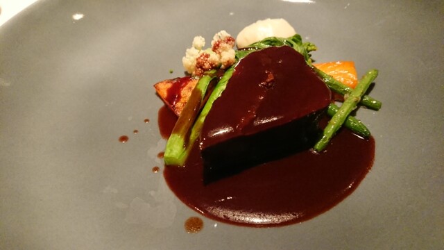 トリュフソースにつけて頂く。秋らしい香ばしさを感じる。