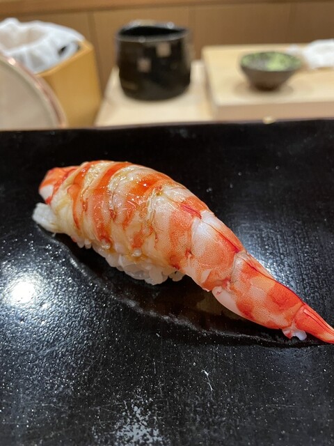 シャリは中間の硬さでやや柔らかめ。コースは長めだが提供のテンポは良く、一人でも退屈しない構成。
