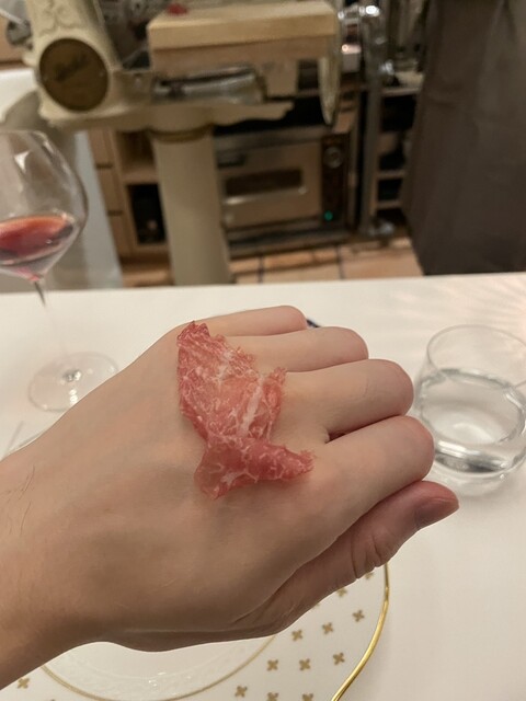 イタリアでも切り立ての生ハムはいただいたが、ペレグリーノの生ハムはそれを遥か超えてくる。香りととろける脂と旨みがすばらしかったです。