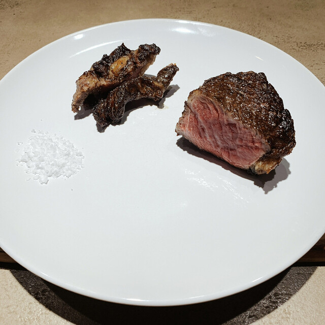 大概我々の食べる牛肉って、2歳未満で出荷されるのだけど、15歳まで育ててるってことは手間も餌代も通常の7.5倍以上かかっているわけで、それだけでも大変。そしてその育てきった肉を美味しく食べさせる調理の技もまた大変。自家牧場で育てて、時間をかけてじっくり焼いた肉は珠玉の逸品。