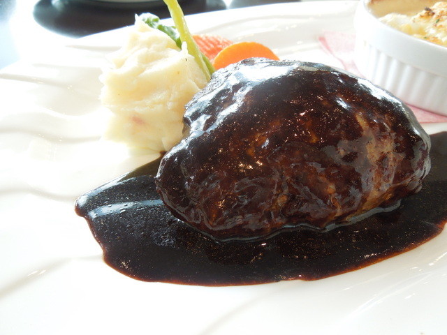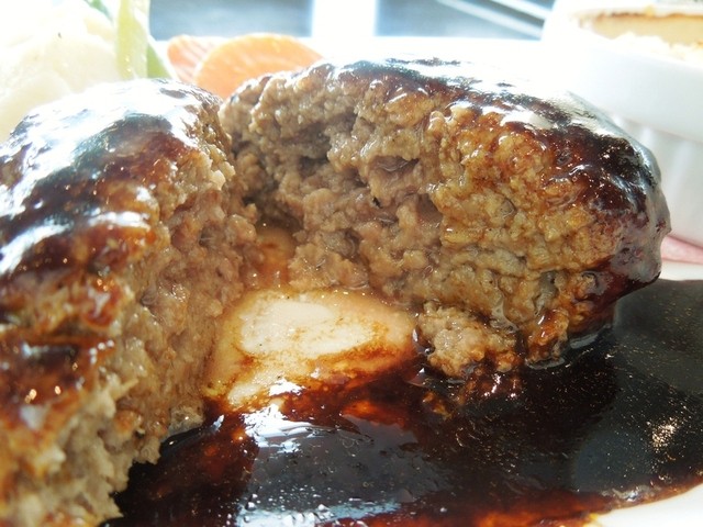 やや乾いた表面と対照的にしっとりしていて濃厚なデミグラスソースが合います。