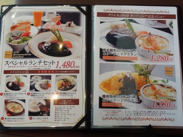 「黒毛和牛ハンバーグ&シーフードグラタン」1280円をチョイスしました。
