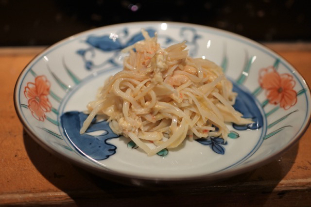 白子ポン酢、やいと鰹、松葉蟹、玉子焼